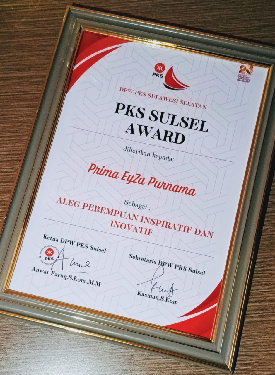 Dengan penghargaan ini, semakin besar harapan atas peran Prima Eyza Purnama dalam melanjutkan kiprah politik PKS yang berintegritas, membumi, dan memberi manfaat nyata.